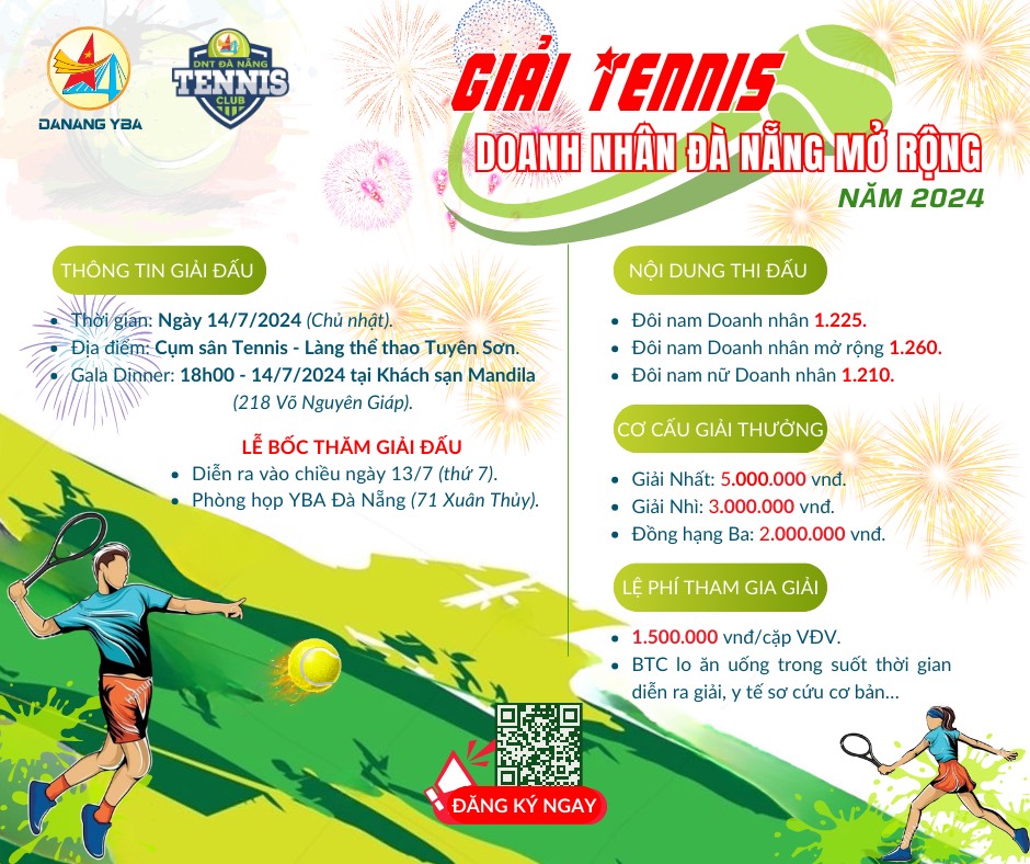 Thông tin tài khoản: 111002954612 Viettinbank - Hội doanh nhân trẻ thành phố Đà Nẵng - CLB Tennis (Ghi rõ họ tên - nội dung thi đấu).
